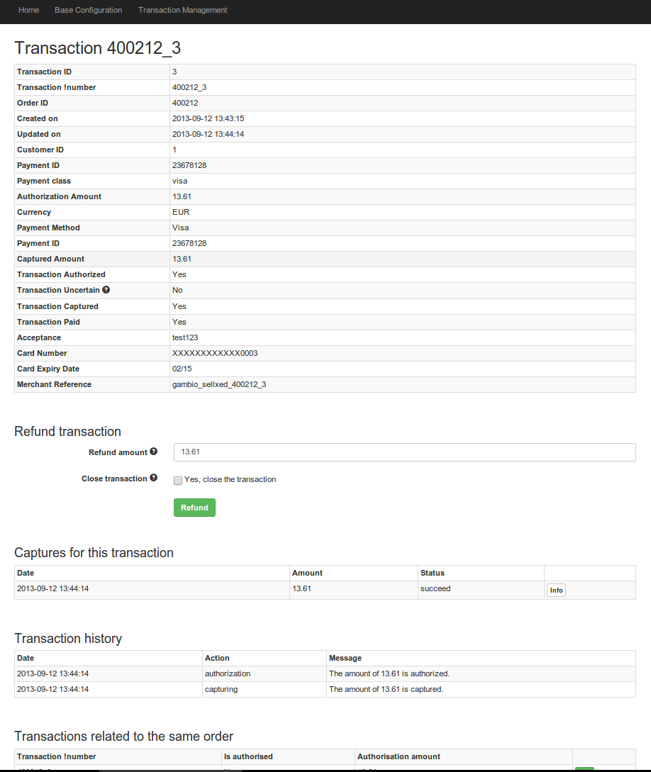 - Transaction management directly from within the shop (capturing, refunds and cancellations)