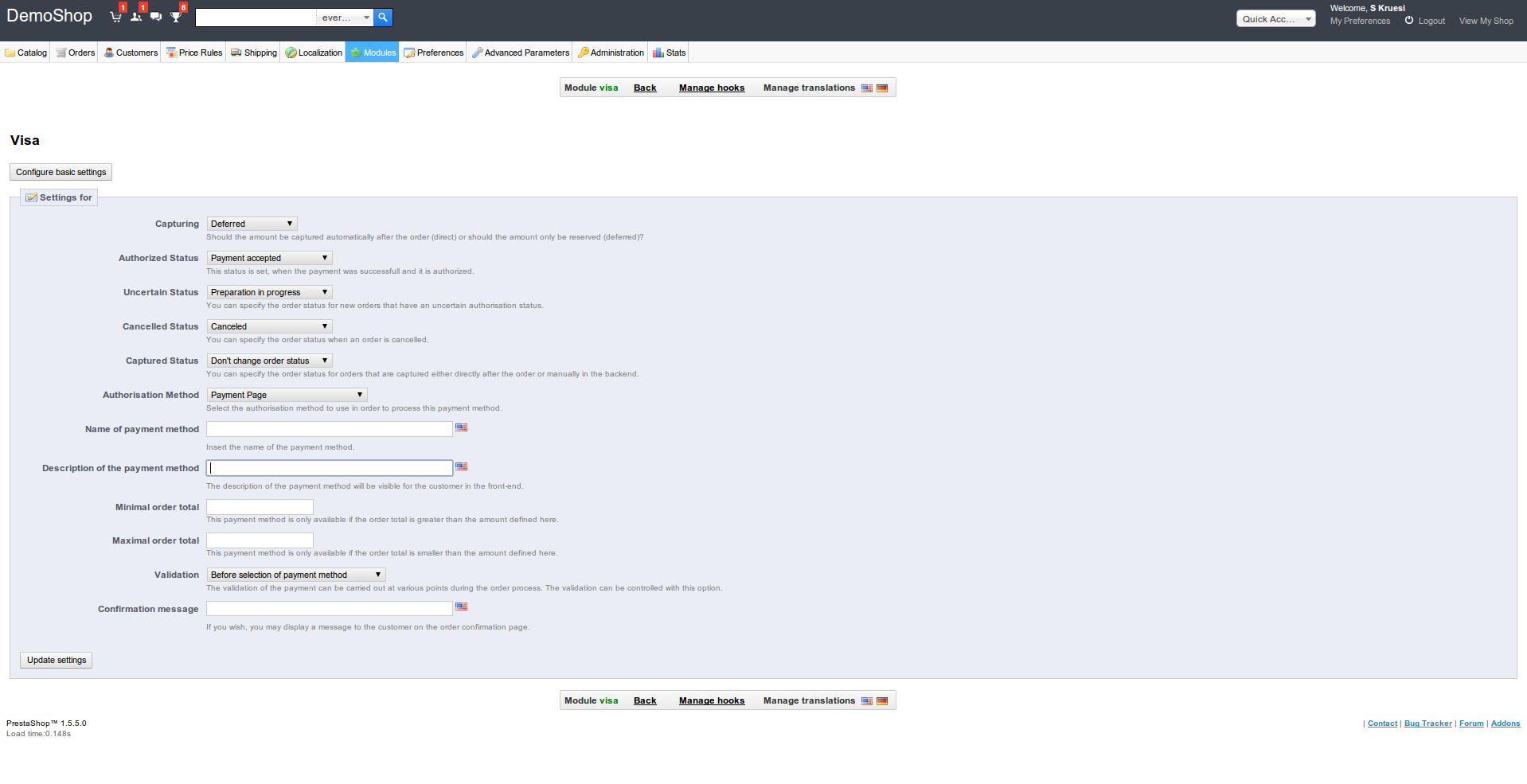 The PrestaShop cartridge supports authorisations, capturings, cancellations and refunds. Payments are easily and efficiently edited within the administration interface of the shop. Logging into the back-end of Computop is no longer necessary. Further information on the transaction management can be found under point Payment Processing.