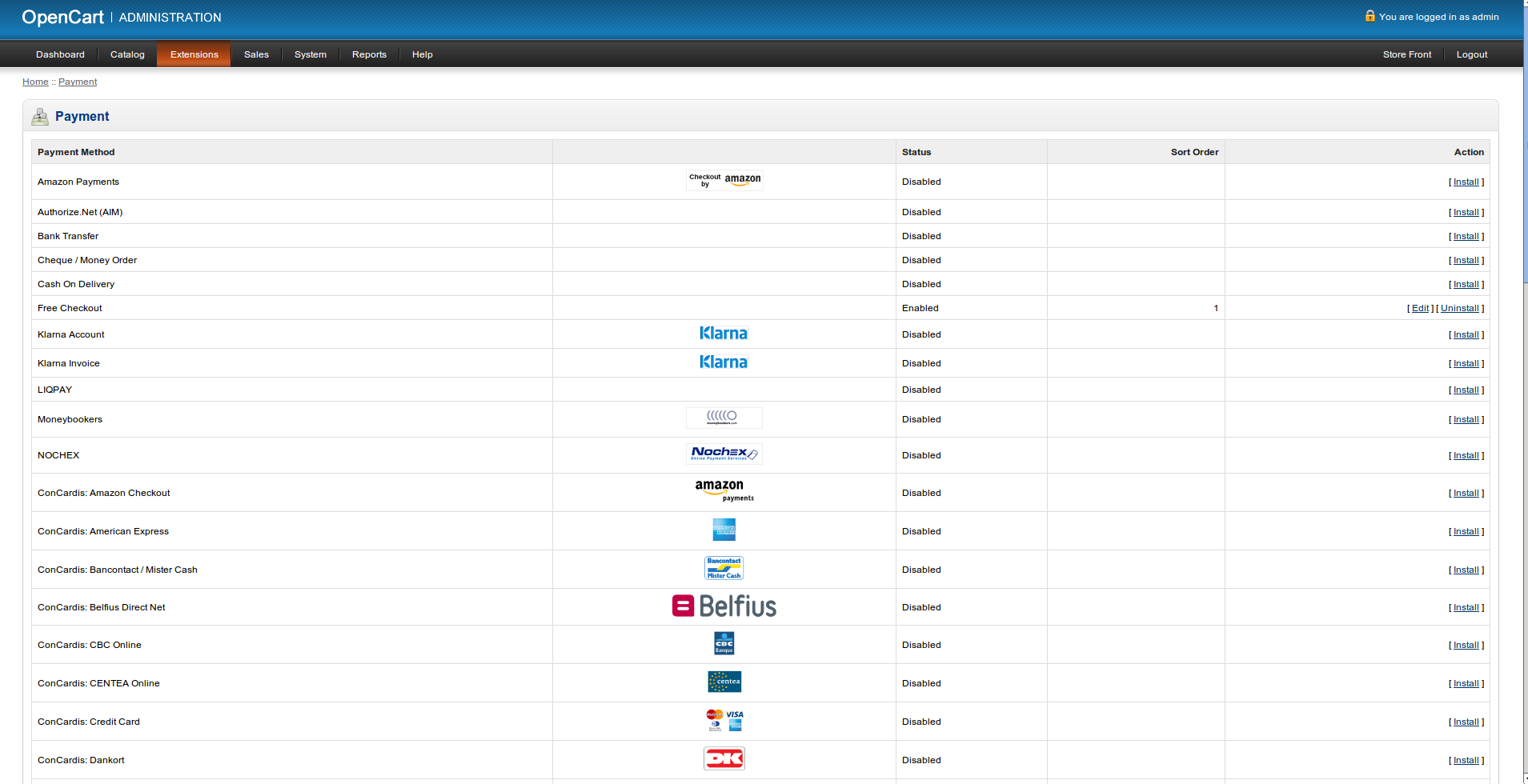 Im Vergleich zu anderen Modulen, kann jede Zahlart individuell konfiguriert und aktiviert werden. Es werden alle relevanten Zahlungsarten unterstützt. Eine detaillierte Liste finden Sie unter Zahlungsarten. Das OpenCart Concardis Comfort, Premium, Professional Zahlungs-Extension Zahlungs-Modul unterstützt auch zahlreiche Rechnungsverarbeiter (OpenInvoice). Aktuell integriert sind: