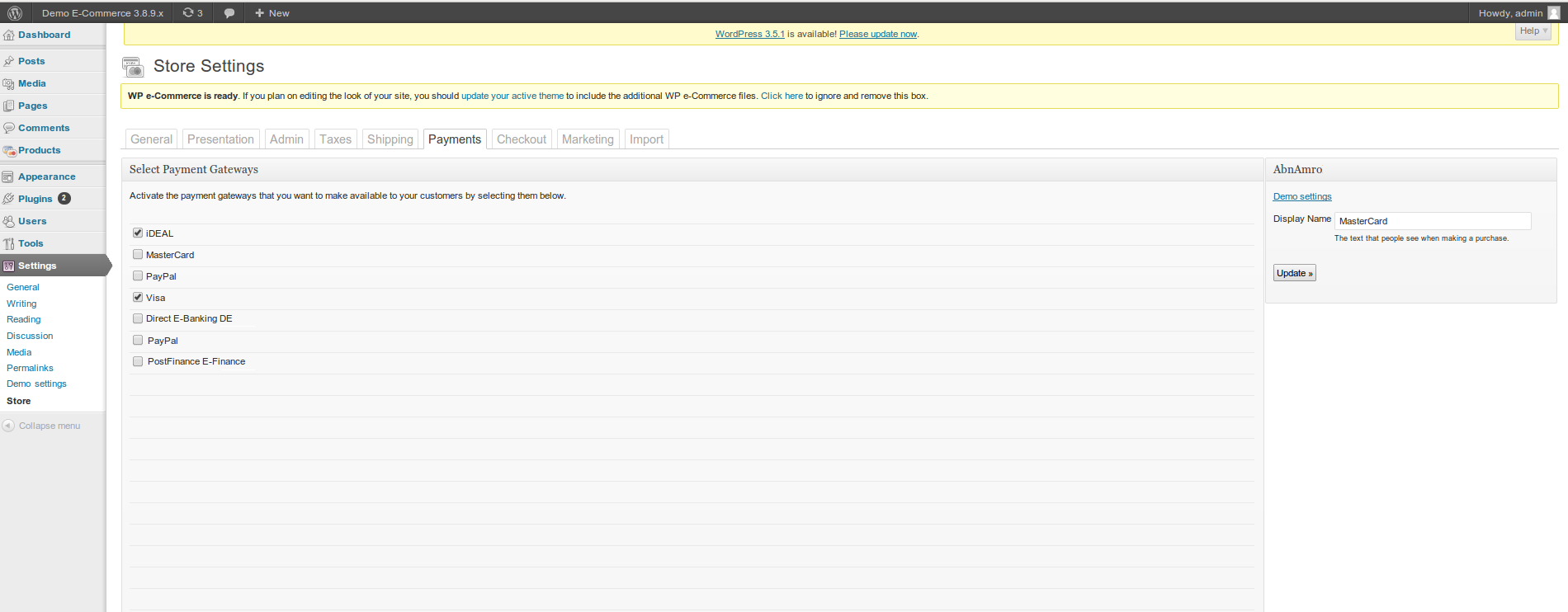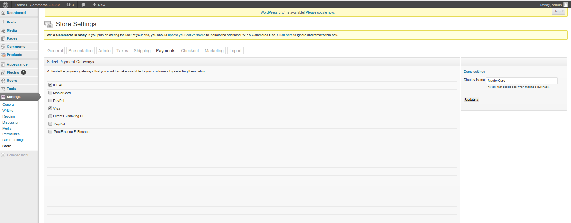 • WordPress E-Commerce extension Version 3 oder höher