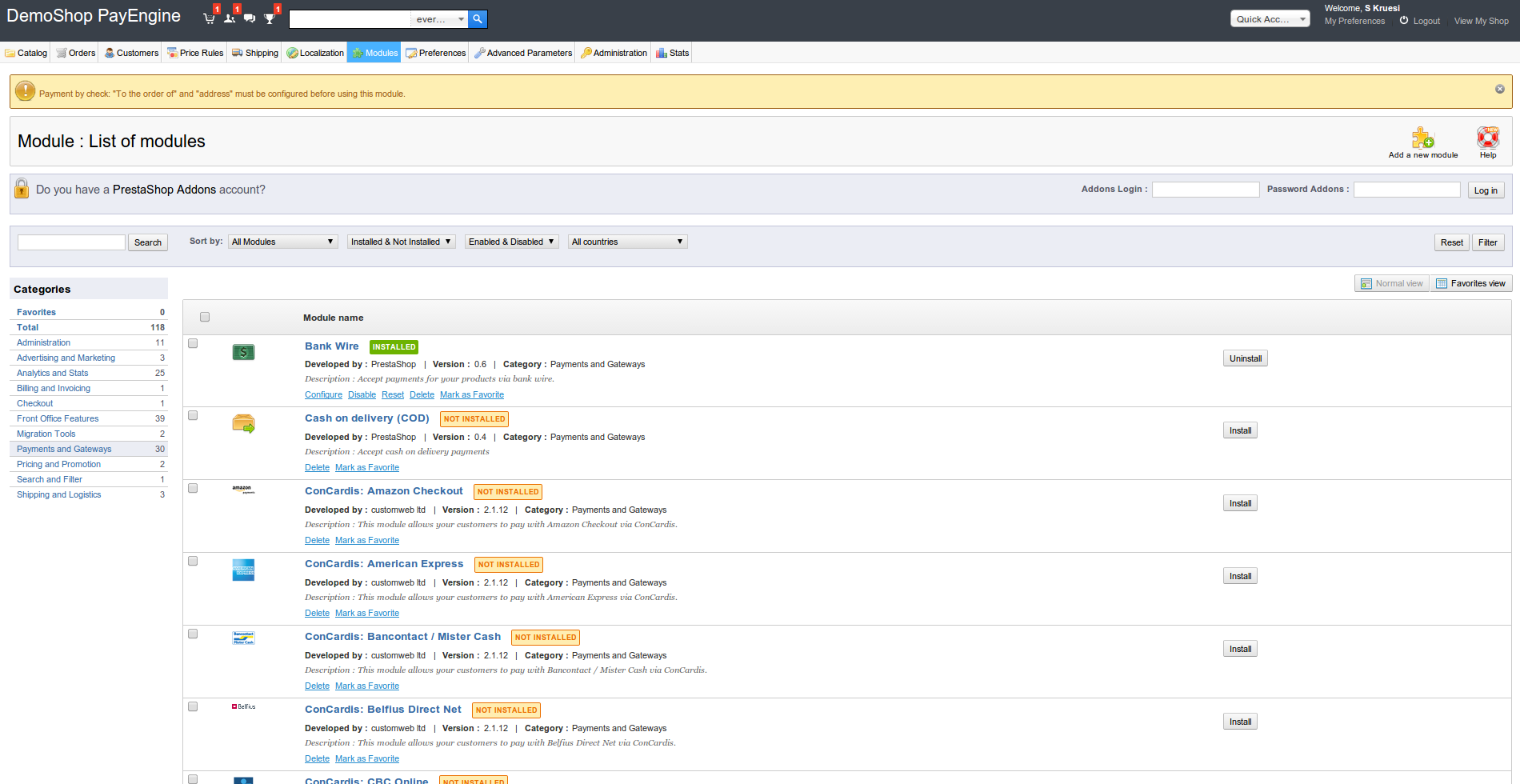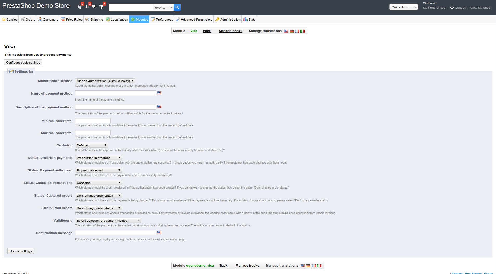 Das PrestaShop Concardis Comfort, Premium, Professional Zahlungs-Modul ist einfach zu installieren und fügt sich nahtlos in Ihr System ein. Mit dem Dynamic Template Mode wird während des Zahlungsprozesses das Layout Ihres Shops geladen; somit bemerkt der Kunde nicht, dass er für die Zahlung Ihren Shop verlässt. Mehr Informationen zur Zahlungsverarbeitung mit dem Dynamic Template finden Sie unten unter Zahlungsverarbeitung.