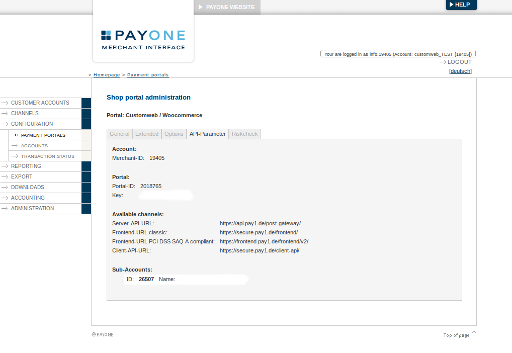 - Configuration of the PAYONE test administration surface. The test platform can be found under https://pmi.pay1.de/