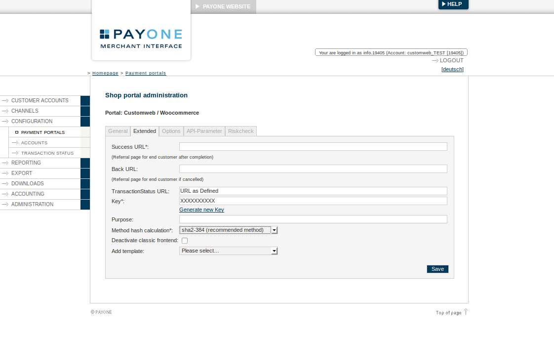 1. Configuration of the PAYONE test administration surface. The test platform can be found under https://pmi.pay1.de/