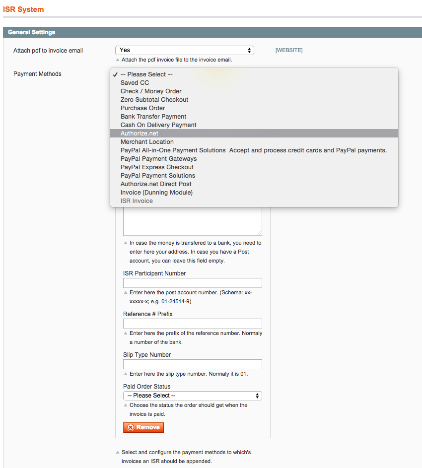 /app/code/local/Customweb/Isr/Model/PdfTemplates/Invoice.php die class Customweb_Isr_Model_PdfTemplates_Invoice extends Customweb_PdfTemplates_Model_Invoice muss ersetzt werden mit: class Customweb_Isr_Model_PdfTemplates_Invoice extends {Klasse der PDF-Extension, welche das Rechnungs-PDF zusammenstellt}