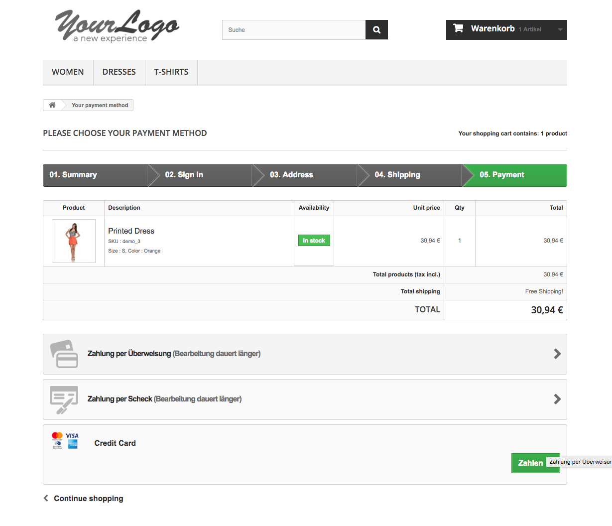 - The customer can choose the payment method during the checkout already.