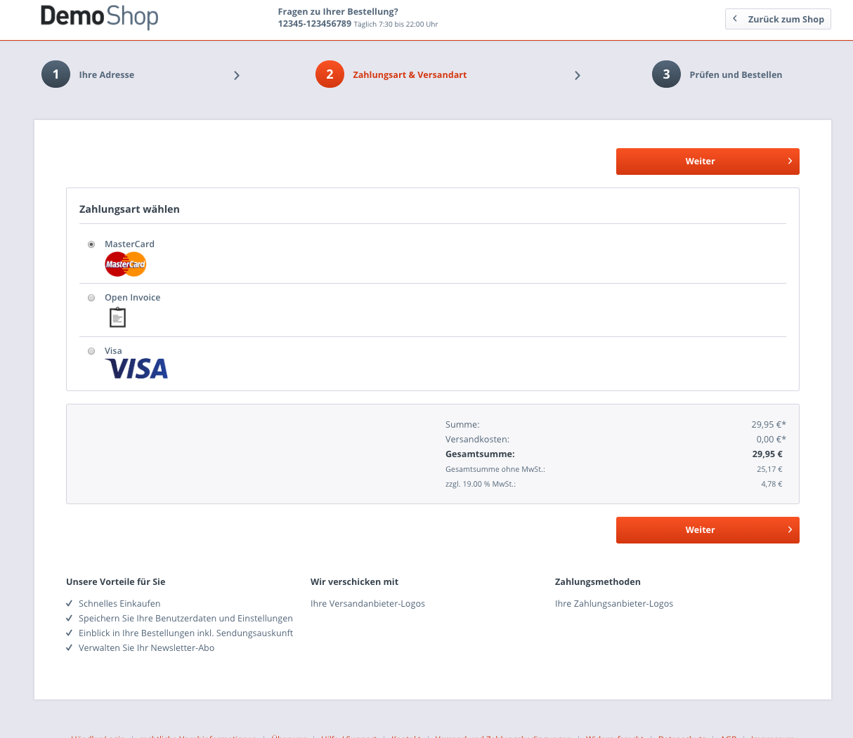 Give your customers access to numerous new payment possibilities. Besides the known credit cards (Visa, Master Card, etc.) you can also integrate debit cards (PostFinance, Maestro, etc.) or eWallets (PayPal, Moneybookers, etc.) and web-banking payment methods (PostFinance E-Finance, sofortüberweisung, ELV/giropay, iDeal, Mister Cash, and many more). A detailed list of the supported payment methods can be found further below.