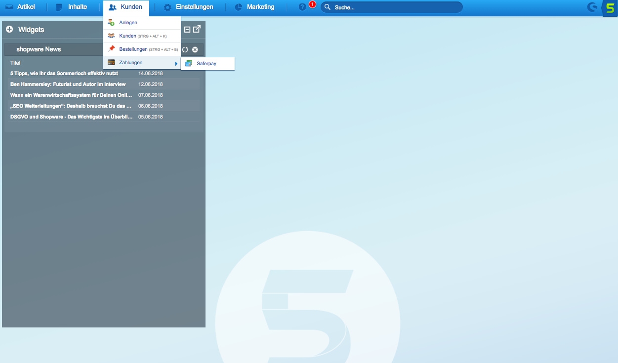 - Transaction management is integrated in the shop administration (capturing, refund, cancellation) - transactions can be processed directly in the shop (Saferpay business license needed)