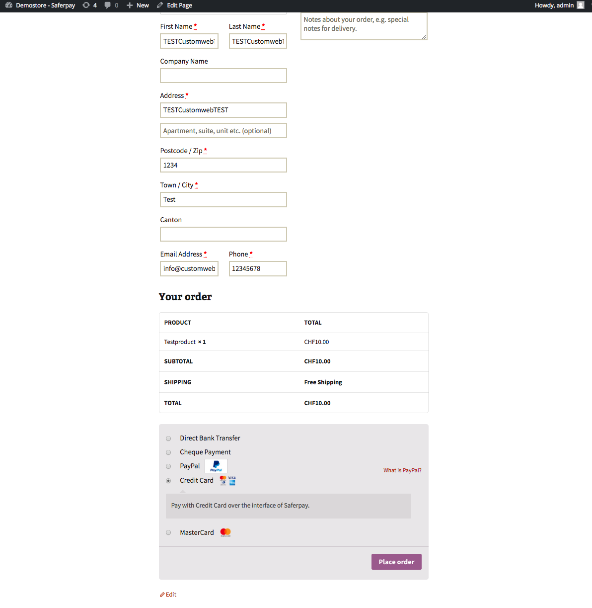 - Saferpay Secure Card Data - you can save the payment data at 100% PCI conformity and you do not need to fill in the information again (Saferpay business license needed)