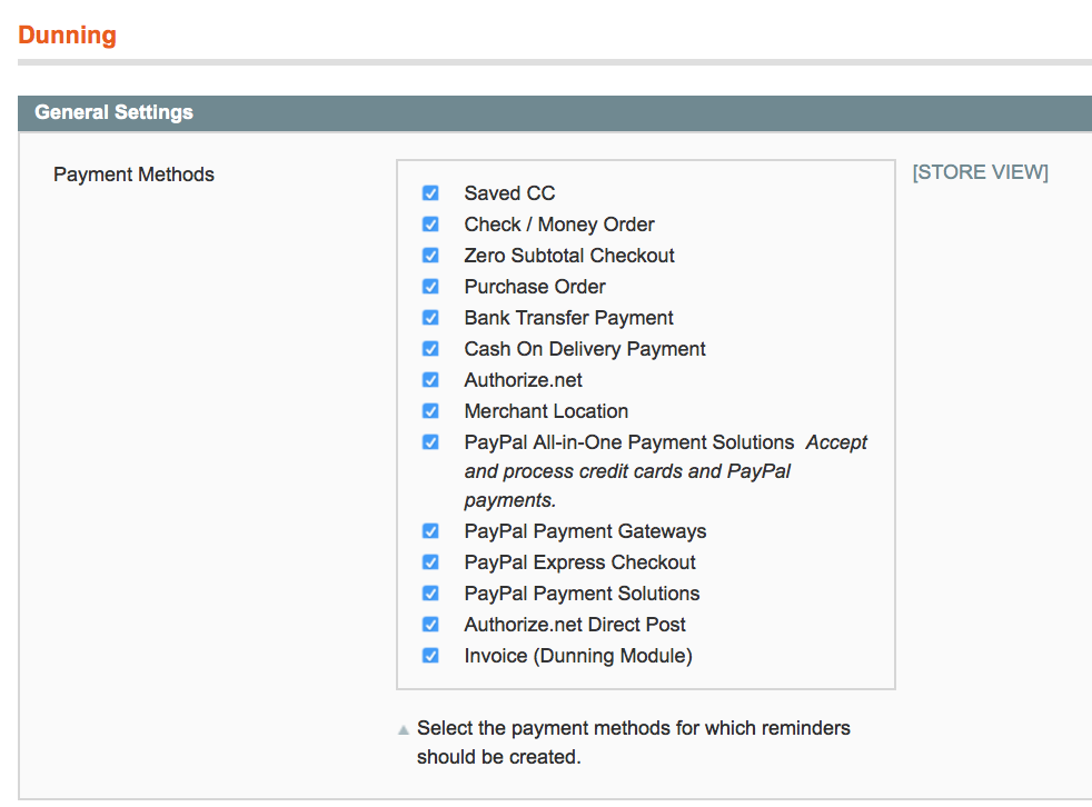 To change the basic settings, go to System > Configuration > Dunning.
