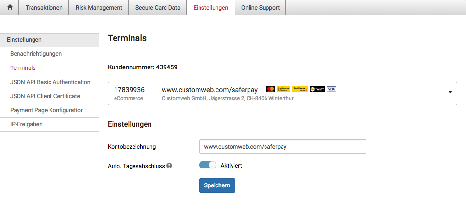For the configuration of the main module with the JSON API you will need a new Customer ID, Terminal ID and the JSON API user and password. The following steps explain where you get this information.