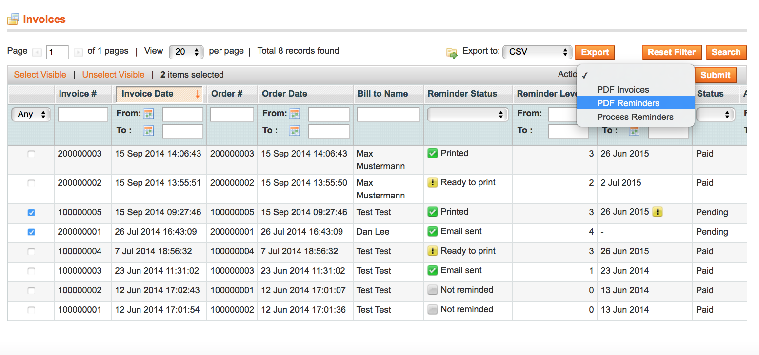 5Arbeiten mit dem Magento Mahnmodul