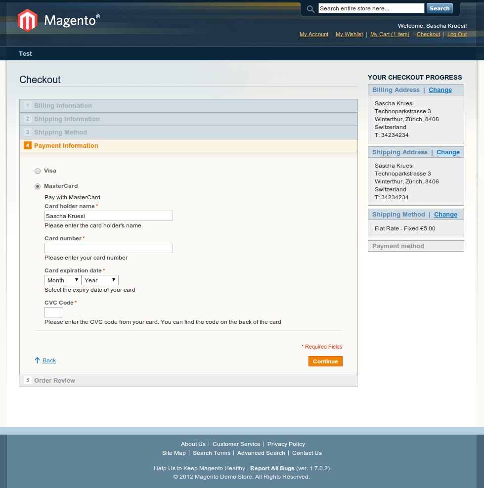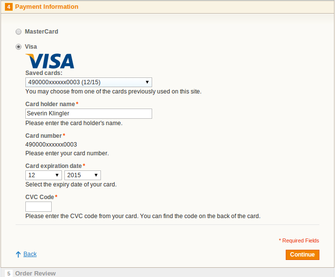 • Data Storage: Sie können die Kreditkartendaten sicher bei Telecash from fiserv speichern und für spätere Einkäufe wieder verwenden