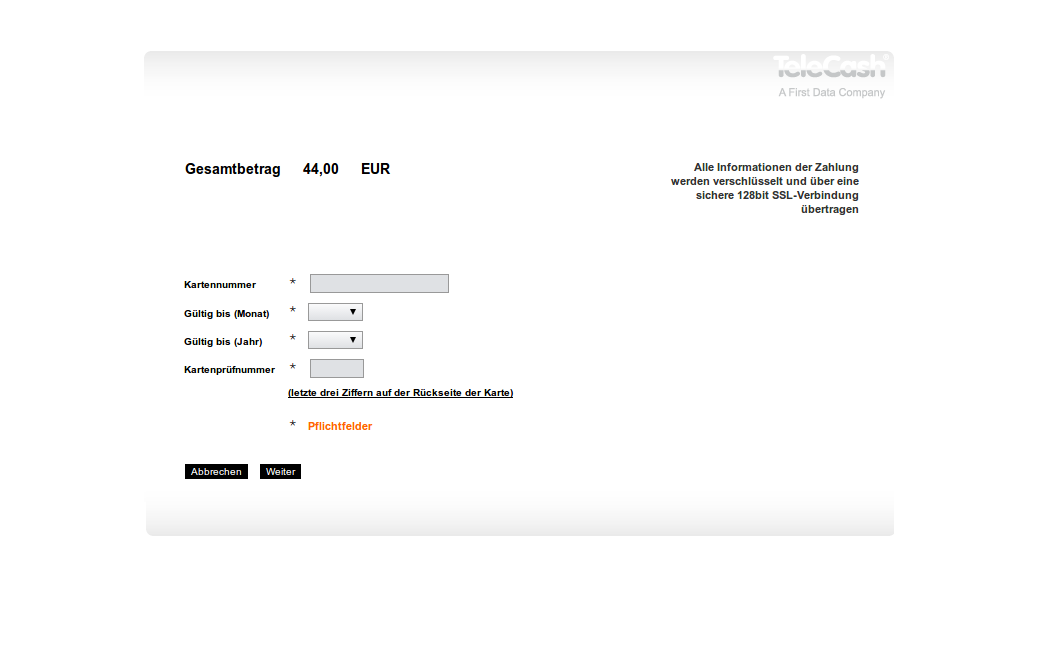 Gambio Telecash from fiserv Payment Module supports the Hidden Authorisation. The Hidden Authorisation gives you the advantage that customers no longer have to leave your shop in order to enter their credit card data. The processing occurs unnoticed in the background between Gambio and Telecash from fiserv. No credit card data is saved. Requires PCI DSS SAQ A-EP Certification. In addition to Hidden Authorization, other authorization methods that are fully PCI DSS compliant (Payment Page, Widget, Iframe, etc.) are also supported. A detailed list of supported features can be found below.