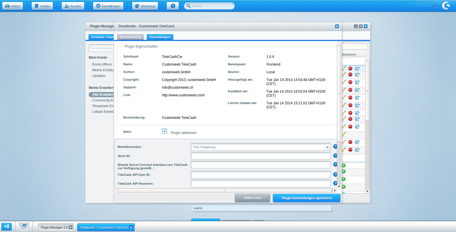 We distinguish between two versions. The professional version of the plugin additionally integrates the API integration of Telecash from fiserv and its features.