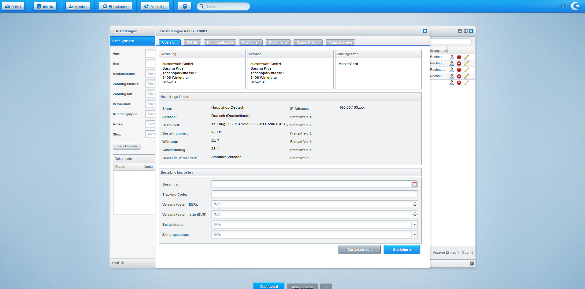 - Captures, Refunds and Cancellations can be processed directly within the shop