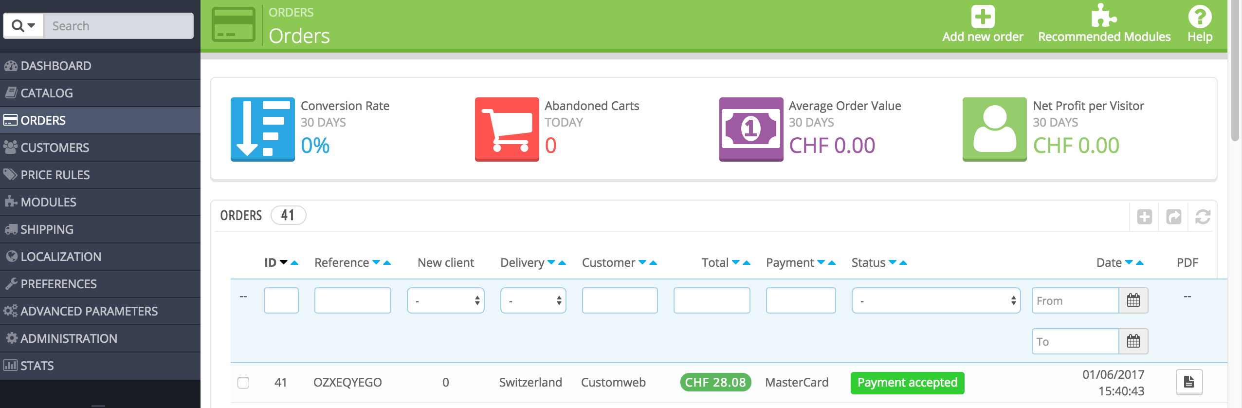 6.3Erstellen von Bestellungen direkt im PrestaShop Backend