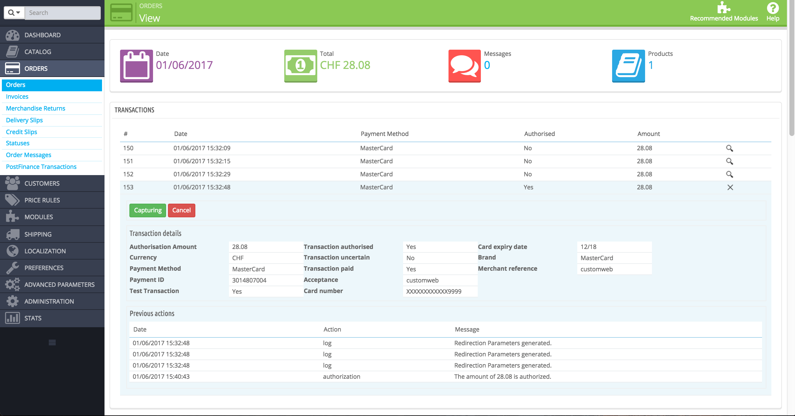 Abbildung 6.1: Erstattung von Transaktionen in PrestaShop